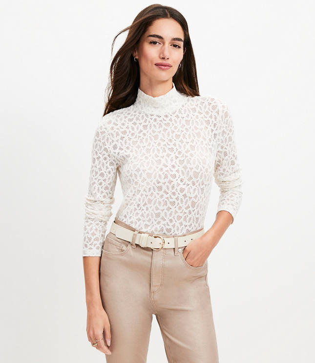 Long sleeve lace turtleneck top deals